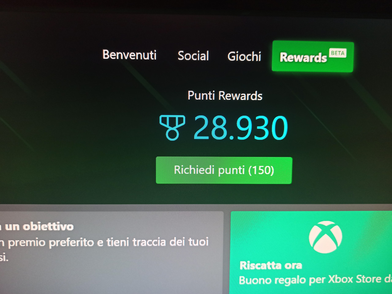 ho provato ha installare app XBOX su pc ma anche in questo caso mi vede 150 punti ancora da riscattare ma se clicco sul tasto verde "richiedi tutti i punti" non me li riscatta.