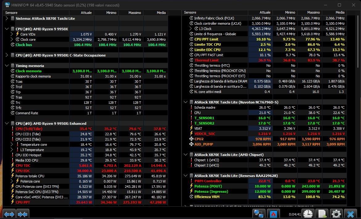 9950X PBO 1X CO -33 Override +100 CPU-Z RS/DU 930/18.563 - CB23-2339 - 47682 47728 -CB24 144 2508 - OCCT - V-RAY 53.994 - GeekBench 6.3 3563/22664 - TEST RS Y-Cruncher BKT - core 0-15 NPbench - CPU-Z 19207 - CB23 49265 - CB24 2593 Ultima modifica di paolo.oliva2 : 11-03-2026 alle 14:47. |