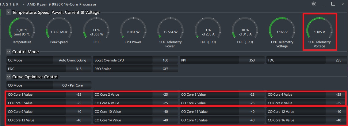 Ho aggiornato tempo fa il bios all'ultima versione, rimessi i setting tramite chiavetta ed è perfettamente stabile. PBO 0 e CO -30.
