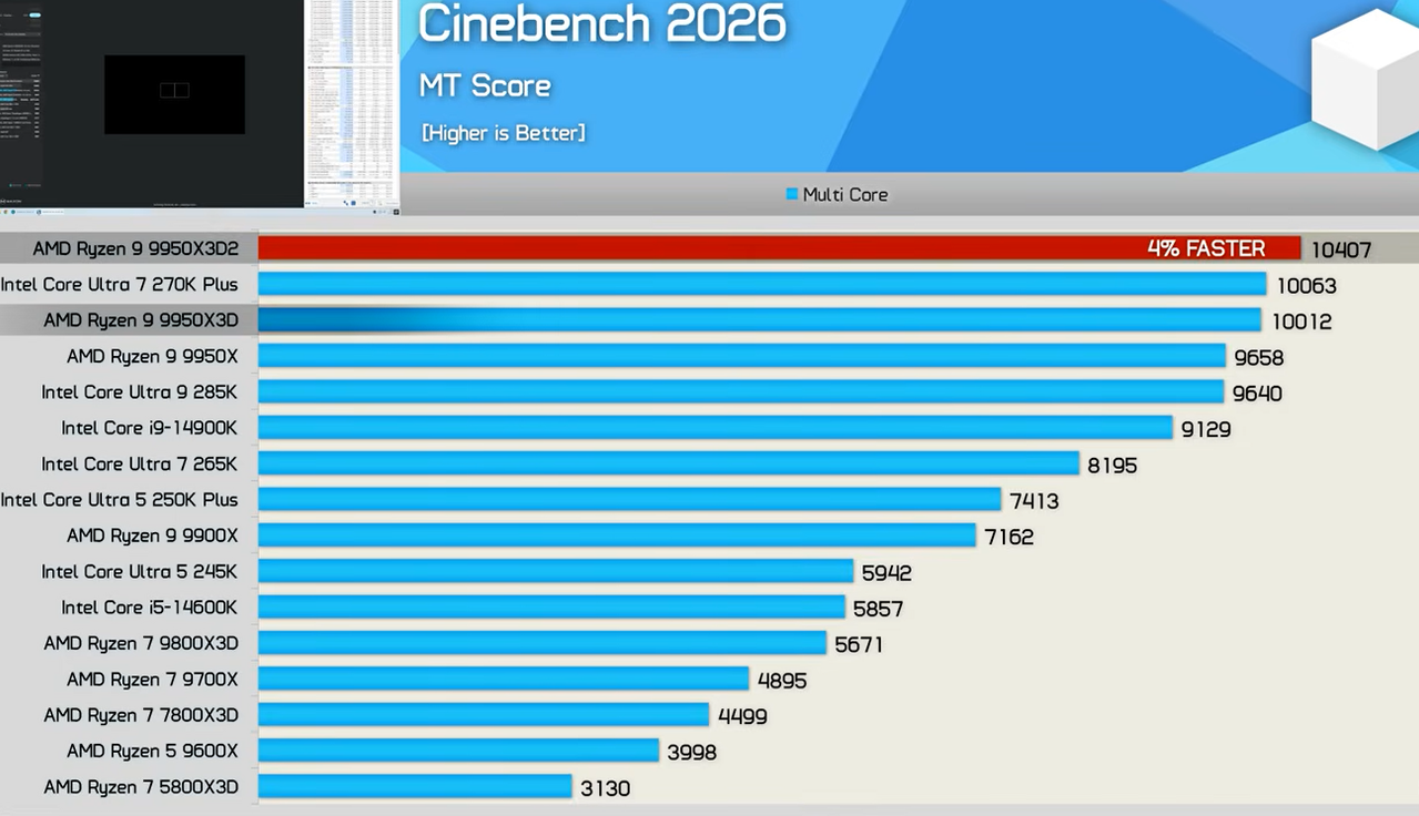 Andrebbe fatto il risultato e a che PPT è stato ottenuto. Io ho un 9950X... lì riporta 9658 a def... suppongo a 200W... io faccio 10500 a 270W... il 9950X3D2 10400, ma a quanti Watt? Purtroppo ho un budget di merda... altrimenti avrei l'avrei provato ad occarlo. Ma meglio che non abbia budget... vs un Zen6 X24 non ci sarà storia... penso che farà almeno 15.000 in CB26.