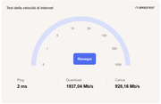 Test con Bing: ![]() Test da CLI ma non ottimizzato con Windows: Speedtest by Ookla Server: Fastweb SpA - Milan (id: 7839) ISP: TIM Idle Latency: 5.90 ms (jitter: 0.05ms, low: 5.84ms, high: 5.98ms) Download: 3229.74 Mbps (data used: 6.0 GB) 23.65 ms (jitter: 5.62ms, low: 6.38ms, high: 95.95ms) Upload: 1889.72 Mbps (data used: 1.2 GB) 6.83 ms (jitter: 0.64ms, low: 6.08ms, high: 8.45ms) Packet Loss: 0.0% Result URL: https://www.speedtest.net/result/c/8...b-e011694686f1 Speedtest by Ookla Server: Wind Tre - Milano (id: 27363) ISP: TIM Idle Latency: 16.04 ms (jitter: 0.15ms, low: 15.81ms, high: 16.20ms) Download: 5755.15 Mbps (data used: 9.5 GB) 17.55 ms (jitter: 4.36ms, low: 17.31ms, high: 53.40ms) Upload: 948.37 Mbps (data used: 1.1 GB) 19.59 ms (jitter: 0.33ms, low: 19.30ms, high: 21.69ms) Packet Loss: 0.0% Result URL: https://www.speedtest.net/result/c/b...6-5fe76c79355d Speedtest by Ookla Server: Wind Tre - Roma (id: 29317) ISP: TIM Idle Latency: 15.84 ms (jitter: 0.10ms, low: 15.75ms, high: 15.98ms) Download: 5657.84 Mbps (data used: 9.9 GB) 19.23 ms (jitter: 1.37ms, low: 17.44ms, high: 42.56ms) Upload: 915.90 Mbps (data used: 1.6 GB) 15.15 ms (jitter: 0.33ms, low: 14.89ms, high: 17.51ms) Packet Loss: 0.0% Result URL: https://www.speedtest.net/result/c/c...0-7e99b3763327 Speedtest by Ookla Server: TIM SpA - Florence (id: 9636) ISP: TIM Idle Latency: 1.80 ms (jitter: 0.11ms, low: 1.75ms, high: 1.96ms) Download: 4921.99 Mbps (data used: 5.8 GB) 19.50 ms (jitter: 10.93ms, low: 2.08ms, high: 46.71ms) Upload: 2073.97 Mbps (data used: 962.8 MB) 3.68 ms (jitter: 0.43ms, low: 1.84ms, high: 4.29ms) Packet Loss: 0.0% Result URL: https://www.speedtest.net/result/c/0...c-38707f98bd5a Se uso LINUX una qualsiasi distro ottengo 8400 (circa) in download e 2200 in upload.