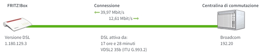 ![]() Tieni presente che io sono a 600 metri precisi dal ripartilinea, + 200 mt di linea in drop autoportante che "viaggia" su palo,e in quata derivata, il fritz box non tiene conto della linea ext, molto probabile per via dell'attenuazione minima. |