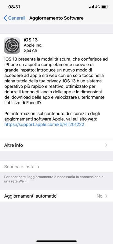 Una volta scaricato, si deve premere su INSTALLA… e prima richiedeva sempre il wi-fi per tuta la fase… invece ora esce INSTALLA (e si installa correttamente) anche solo col 4G