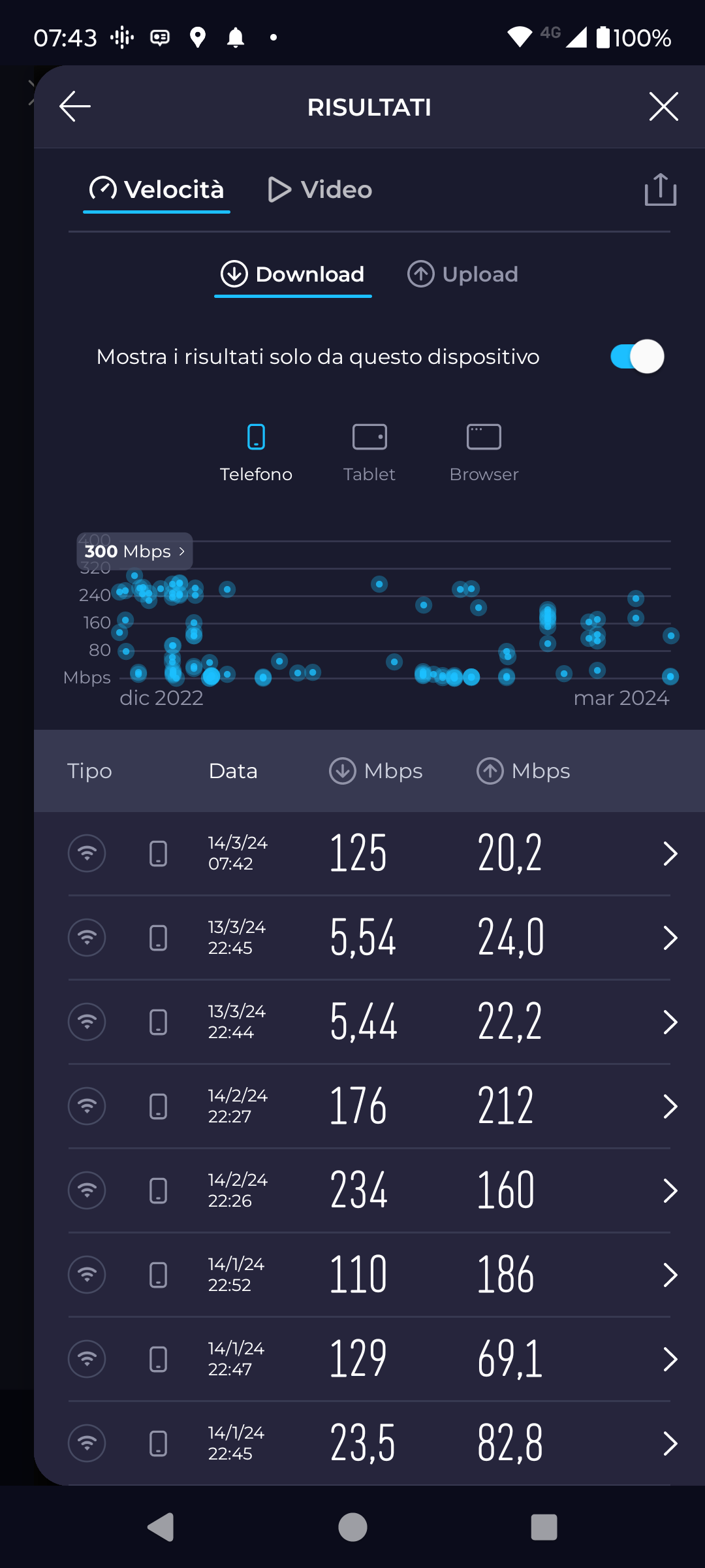 SI Se non fossi coperto da fibra e dovessi utilizare l'Iliad box solo con l'adsl non è possibile? Non è possibile. Le telefonate da fisso sono incluse (ho un abbonamento per il cellulare da 9,99 e quindi dovrei pagare 19,99 per l'Iliadbox) SI, le telefonate dal fisso sono incluse (esiste ancora qualche operatore che le fa pagare a consumo????). Il router "box" fisico non ha un costo aggiuntivo (ed è tutto compreso nel costo di installazione oppure si deve pagare anche un "affitto" mensile per averlo)? Non ha un costo aggiuntivo. Altre "brutte" sorprese non ce ne sono, vero? Se parli di costi no, loro se ne fanno un gran vanto e fanno un sacco di pubblicità si questo. Se parli di tecnologia.... ci sono un po' di problemi o come direbbe qualcuno 'caratteristiche'. Oddio le 'caratteristiche' un po' particolari ce li hanno tutti gli operatori, non proprio problemi o difetti ma cose un po' fastidiose di cui devi tener conto caso per caso. Nel caso di iliad se ne è parlato tantissime molte, alcuni problemi sono stati risolti, altri arginati, altri rimangono. A memoria quello su cui mi sono scontrato (su cap 20155 e 20159): - permangono le micro discossessioni, massimo 3 secondi in orari notturni. non te ne accorgi neppure, lo vedi dal log. tutti i software che usano internet hanno resilienza per 3 secondi a meno ovviamente quelli in tempo reale (videoconferenza, ad esempio) - ogni tanto qualche database ti localizza in Francia (sempre più raro) e ti propone contenuti francesi o peggio ti vieta alcuni contenuti perchè non disponibili ad utenti francesi. Ad esempio per un anno non mi è andato discoveryplus, perchè voleva mostrarmi contenuti francesi e non potevo cambiarli in quelli italiani (dir la verità non mi faceva proprio loggare, mi diceva che quell'utente con il quale ero registrato valeva solo in Italia, ma secondo loro ero in Francia. Poi la cosa l'hanno sistemata ma in tutta pazienza...). - non hai un range di porte ip completo. necessario per servizi particolari. - il caso più grave e che ancora ne soffro: quando ci sono partite i streaming non sanno gestire il tanto traffico e ti uccidono le prestazioni. Ieri sera ad esempio su Amazon Prime c'era l'inter ed io non sono riuscito invece a vedere SOUTH PARK su pluto.tv perchè per 10 secondi di visione mi capitavano altri 2 o 3 di buffering (poi dipende da app ad app, netflix o youtube sono ottimamente resilienti, scalano la qualità pur di non interrompere la visione, ma altre app magari integrate nelle smart tv non fanno così, ad esempio skyglass o skyq sono una strage...). Ecco uno speedtest del 13 marzo 2024 alle 22.45. Come si vede non riesco a navigare oltre i 6 MB, insufficienti per streaming (i test precedenti (ma anche quello fatto or-ora, il primo in alto), con la stessa connessione ma in momenti senza partite, si superava il 100):