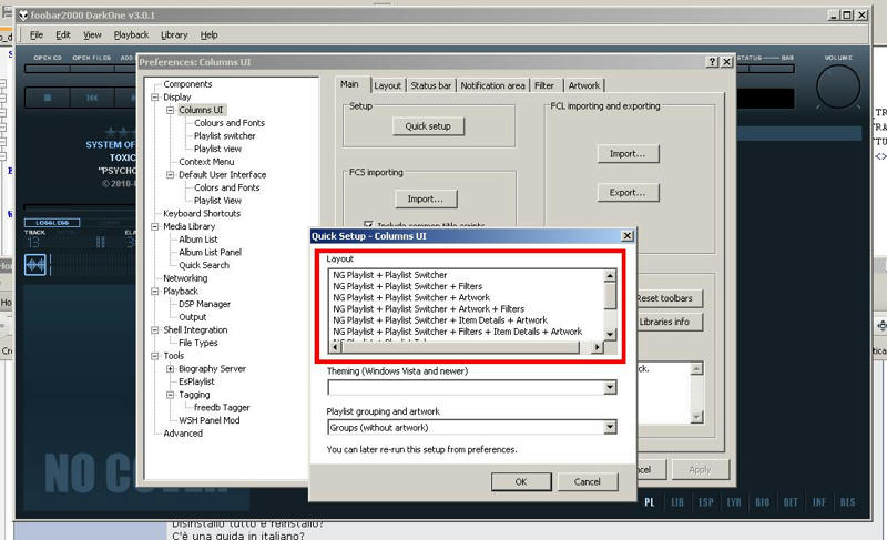 Successivamente mi ha chiesto di scegliere la disposizione delle "finestre di foobar2000" e ne ho scelta una a caso dopo di che mi si presenta così ![]() Disinstallo tutto e reinstallo? C'è una guida in italiano?