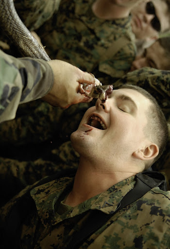 Ai corsi di sopravvivenza in ambiente jungla insegnano a fare la stessa cosa ma con i serpenti... altre prelibatezze jungle made scarafaggi pronti per la cottura http://www.okinawa.usmc.mil/public%2...25-jungle6.jpg sangue di serpente (dopo averne reciso la giugulare con il metodo sopra descritto) http://lh6.ggpht.com/_uLxCUo-6IAc/R8...PS23819R-4.jpg Ultima modifica di easyand : 19-01-2009 alle 20:50. |