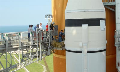 Shuttle Endeavour poised for Saturday evening launch ![]() The shuttle Endeavour's countdown is ticking smoothly toward launch Saturday evening on a delayed space station assembly mission to attach an experiment platform to a Japanese lab module, to replace aging solar array batteries and to deliver spare parts and supplies. http://www.spaceflightnow.com/shuttle/sts127/090710mmt/