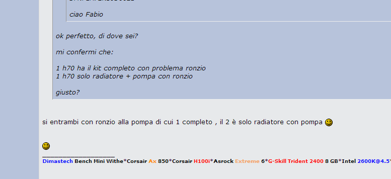 ![]() ![]() Non mi sto rivolgendo al problema del ronzio ma al radiatore schiacciato.... il ronzio non è un problema (e lo sapevo) se messo in verticale h70... Non vi fissate sulla parola "difettosa"... sta di fatto che non ho la ventola... era completo e completo lo voglio, oppure la transazione è negativa, non è di parola, se lo fosse stato a quest'ora non ero qui. //Skyline