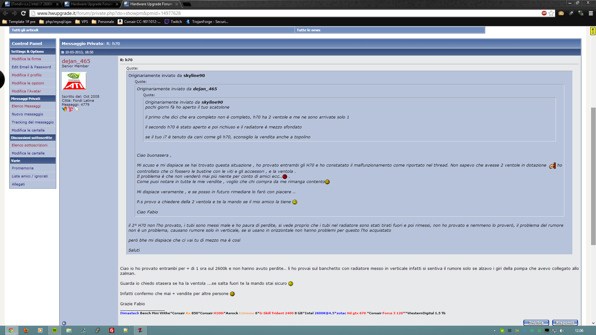 Mi unisco alle tue parole , comprato molte cose da dejan e mai un problema , tutto assolutamente da descrizione oltre che Cordialità e serietà della persona sopra la norma ... ricordo anche io il thread in cui era specificato che gli h70 erano difettosi!! Fabio hai fatto bene a segnalarlo ai mod!Buona Vendità