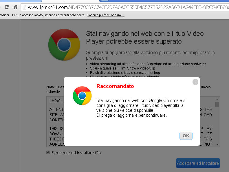 Altre volte mi compare una schermata simile che però dice di aggiornare flashplayer. Ecco cosa mi appare di tanto in tanto (nei giorni scorsi è capitata molto saltuariamente, ma stasera da quando ho acceso il Pc circa 1 oretta fa è già apparsa 3 volte). Rileggendo il mio precedente post mi era capitato a maggio una roba simile. Poi per fortuna dopo qualche settimana aveva smesso. Moh da un paio di giorni ha ricominciato di nuovo. ![]() Ultima modifica di paditora : 02-11-2014 alle 19:02. |