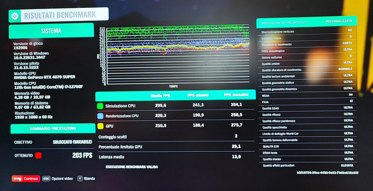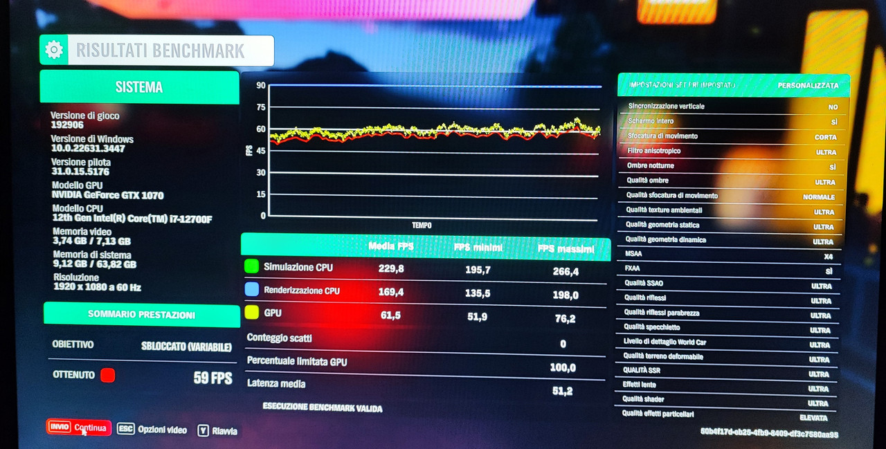 come confronto ho usato il bench di FORZA HORIZON 4 DEMO