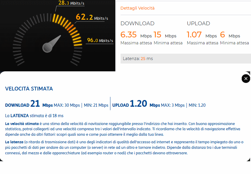 Giusto per curiosità mentre controllavo le bollette sul sito, ho fatto uno speedtest, e mi è uscita sta schermata alla fine.