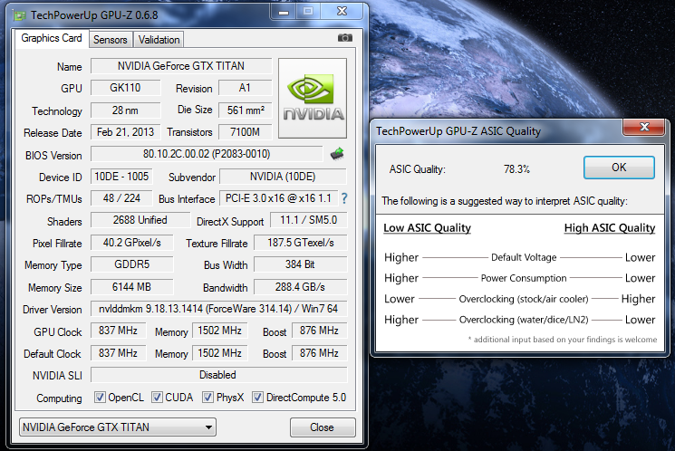 Ma io quando vado a controllare l'ASIC mi dice che "ASIC quality report is not available in this card".. uso l'ultima versione di GPU-Z