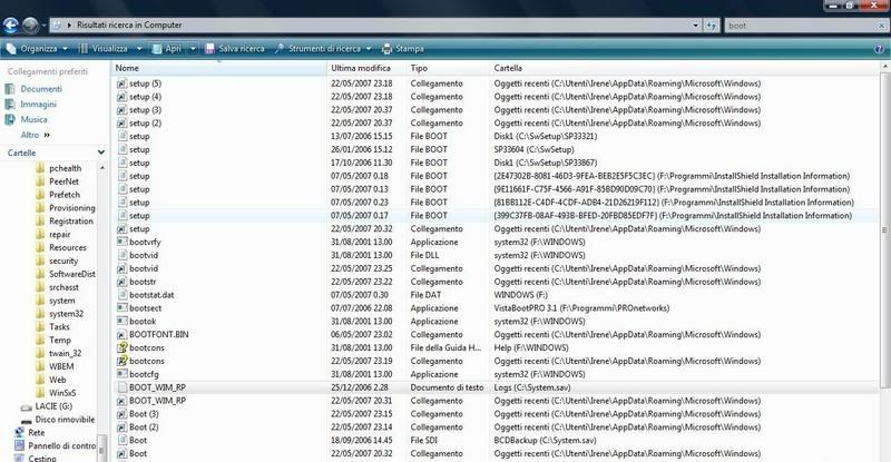 C: dedicato a Vista D: partizione di ripristino HP E: unità DVD F: dedicato (in teoria) a Xp Noto ora che l'icona della partizione di Vista ha il simbolino di Windows mentre quella di Xp no. Che c'entri qualcosa? |