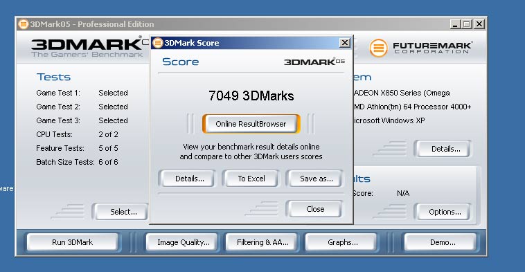 Si.. posso postarti 3dMark2005, 3dMark2003 e 3dMark2001SE effettuati con il mio pc (scheda madre MSI K8N Neo Platinum, A64 4000+). Calcola che non ho utilizzato particolari "trucchi" per far salire i punteggi, le impostazioni dei drivers video, dei filtri e delle texture erano tutti @default, a parte le frequenze della scheda che erano settate alle frequenze della PE. Come drivers utilizzavo gli Omega.