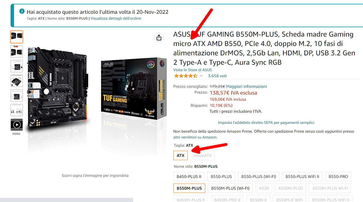 Amazon non sa cosa mi arriverà, ma io temo sia la mATX. Suggerisce di riceverla e poi casomai rimandare indietro.. Oppure cambiare prima della spedizione