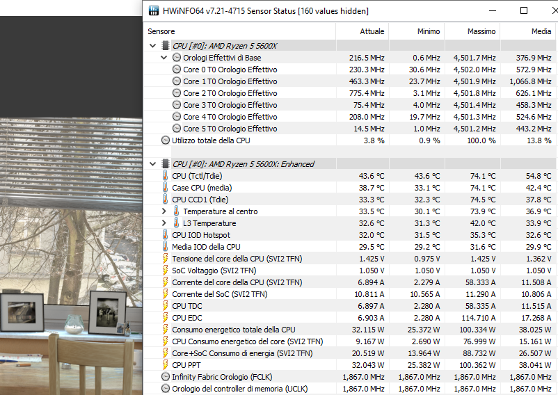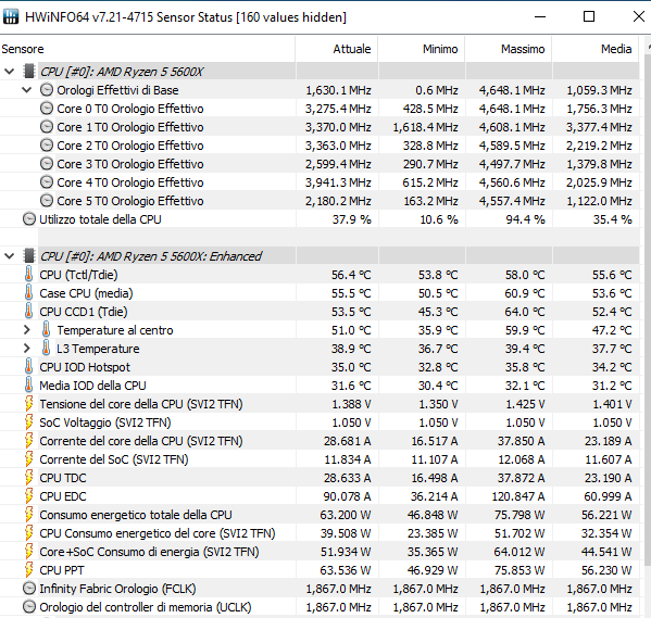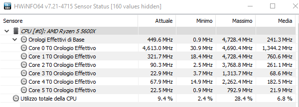 Allego un log di HWinfo64 riguardante il mio sistema con 5600x, per vedere temperature e frequenze mentre utilizzo il pc, a fronte dei commenti ripetitivi e noiosi su temperature ecc ecc: