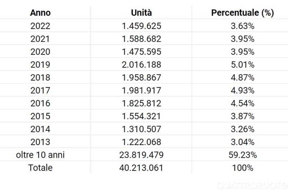 Parco auto italia età media 12.5 anni, cioè la vita è doppia, e si sta allungando! "In Europa ci sono sempre più auto (vecchie)..." https://www.quattroruote.it/news/mer...sorpresa_.html in italia le auto con oltre 10 anni sono quasi il 60%, la maggioranza schiacciante !!! Quote: