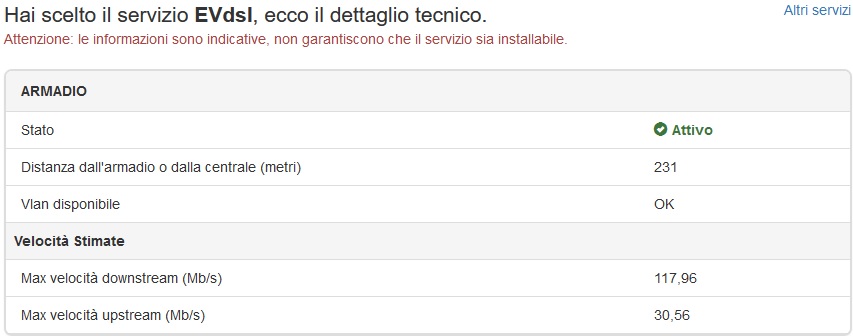 Guardano i parametri di linea, dovresti essere a circa 350/400 metri dall'armadio ripartilinea. |