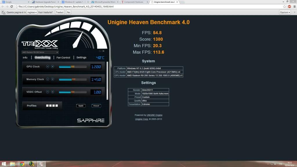 Fps 57,8 Score 1455 Min fps 20.5 Max fps 120 Preset extreme Con CPU Intel 3930k a default (3.2ghz) e vga a 1200/1450 Inviato dal mio Nexus 5 utilizzando Tapatalk |