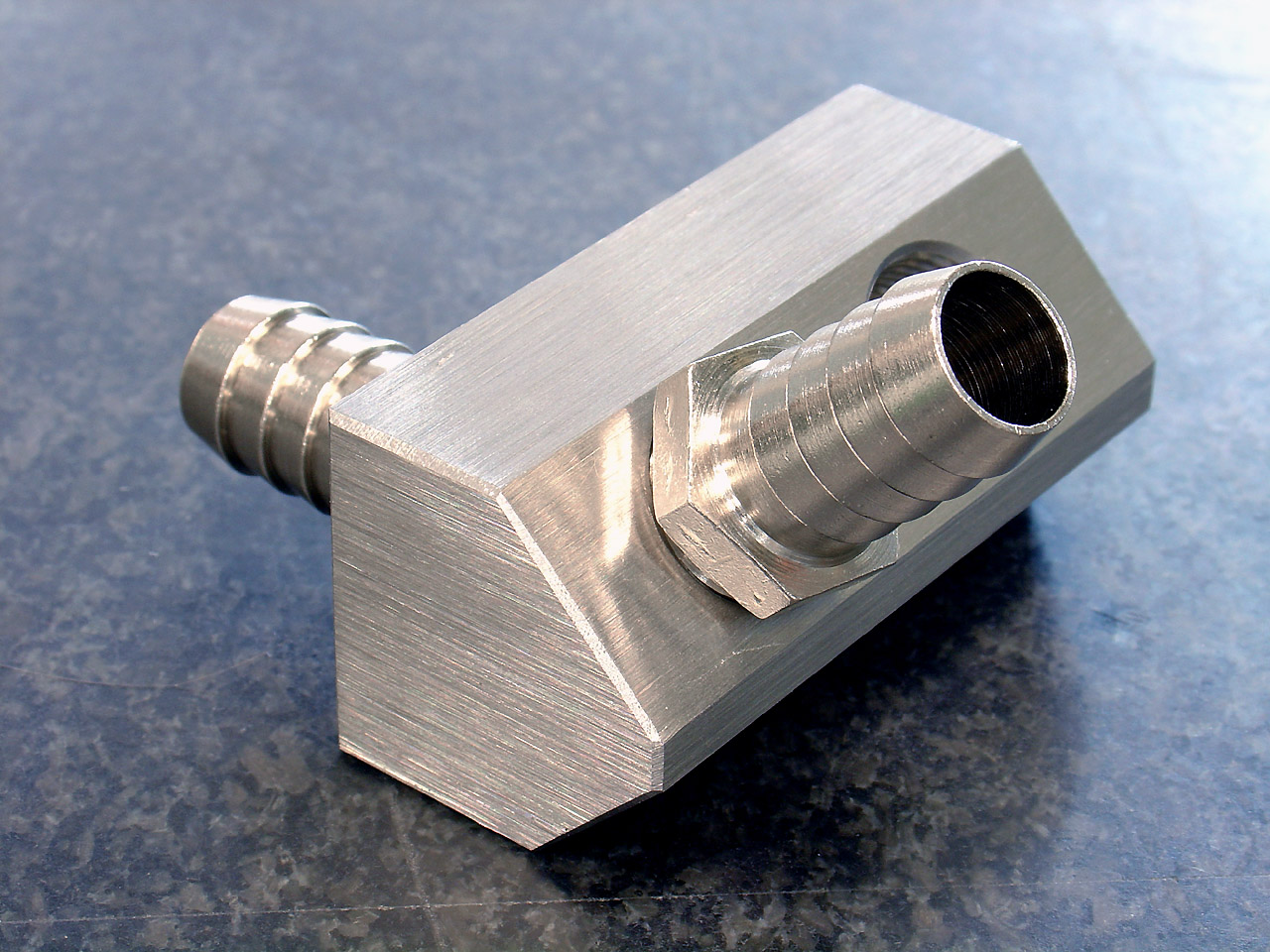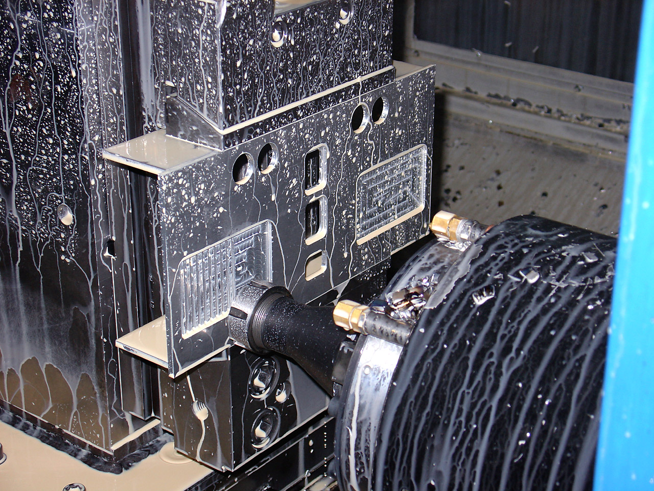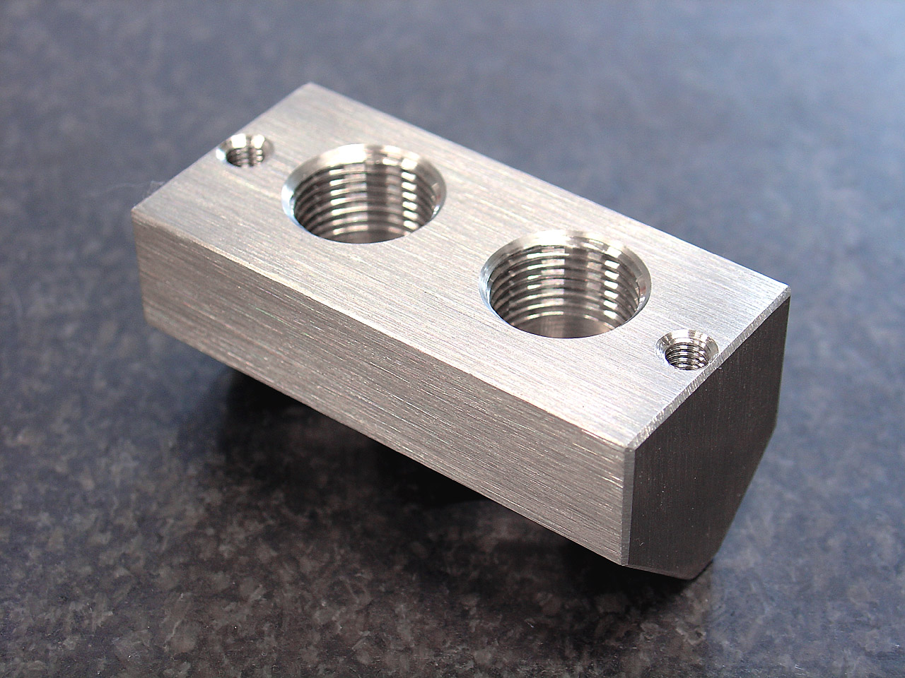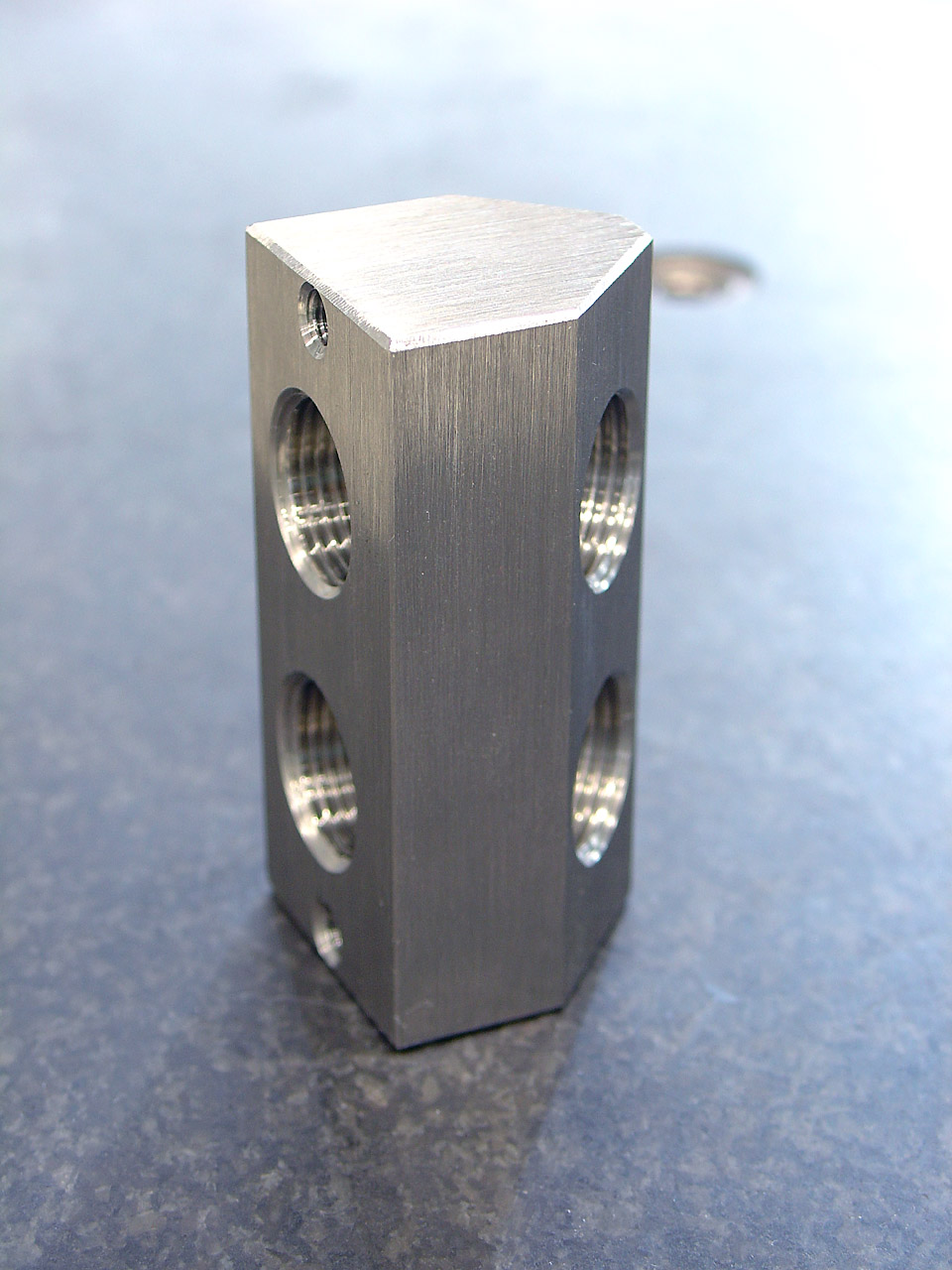 Ogni blocco ha 2 passaggi con forature filettate da 3/8" Gas, l'inclinazione delle coppie di fori è di 45°. Materiale grezzo ricavato da barra in AISI 30x30mm ![]() Zoom! Alcune foto delle 2 fasi di lavorazione su centro di lavoro. ![]() Zoom! ![]() Zoom! ![]() Zoom! A presto con le foto dei 4 blocchetti rifiniti a mano, satinati e smussati. Ciaooo |