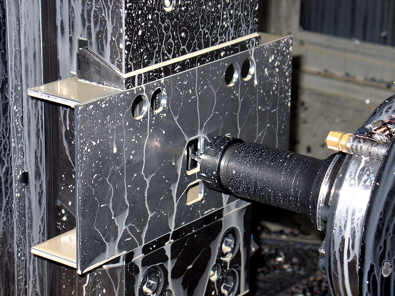 una domanda tecnica: che liquido è quello che viene spruzzato sulle parti in lavorazione? |