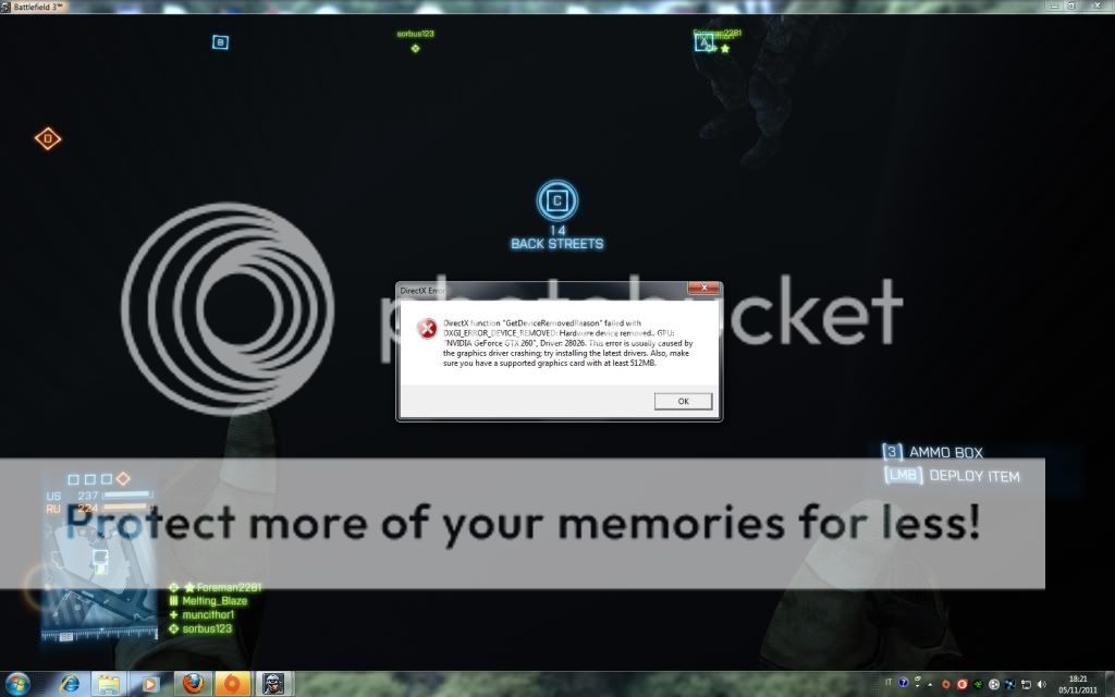 oggi son riuscito a giocare per ben 2 volte per addirittura 20 minuti di seguito! sarà perchè ho messo texture su high e tutto il resto al posto che medium su low?perchè gioco ridotto a finestra che è molto squallido?mah cmq a volte crasha dandomi sto errore delle directX... screenshot dell'errore. soluzioni? consigli? rituali strani?