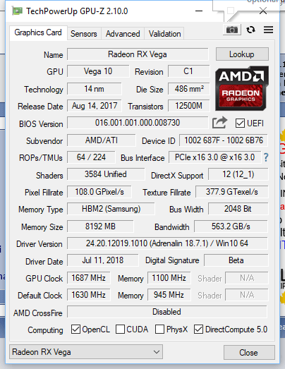 Non capisco, a parte che il sistema dovrebbe essere ben configurato (impostai il vcore del 2700X a 1.36v e basta) e formattato, questo ormai ne ha viste di tutti i colori e non mi visualizza nemmeno i .png dicendomi errore nel file system ma non capisco questa scheda: sul sito di Sapphire parla di una 64 Nitro+ LE che ovviamente non sembra questa, mi spiego, confezione, quanto indicato da gpuz sembrerebbe indicarlo ma, per esempio non ha i tre connettori da 8 pin ma due soli http://it.tinypic.com/view.php?pic=m...9#.W1YGZeQnbxA http://it.tinypic.com/view.php?pic=o...9#.W1YH3uQnbxA Questa mi sembra molto diversa dalla mia https://www.techpowerup.com/238742/s...odel-pictured- Queste le frequenze che dovrebbe avere https://www.techpowerup.com/gpudb/b5...tro-rx-vega-64 La mia a parte che il sistema Windows 10 troppo "incasinato" potrebbe ingannare gpuz mi dice 1630MHz per la gpu sia default che attuale e 945MHz per la ram. Ma quello che mi lascia basito, come ripeto sono i due connettori, in rete trovo solo quella con tre!