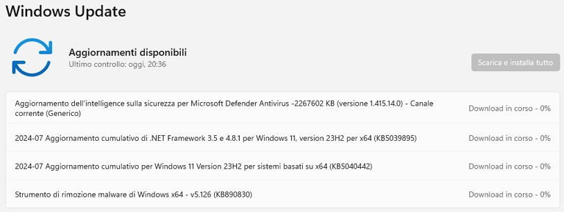 (quando me ne sono accorto avevo già spento il PC)![]() Build 22631.3880 This security update includes improvements that were a part of update KB5039302. Below is a summary of the key issues that this update addresses when you install this KB. If there are new features, it lists them as well.