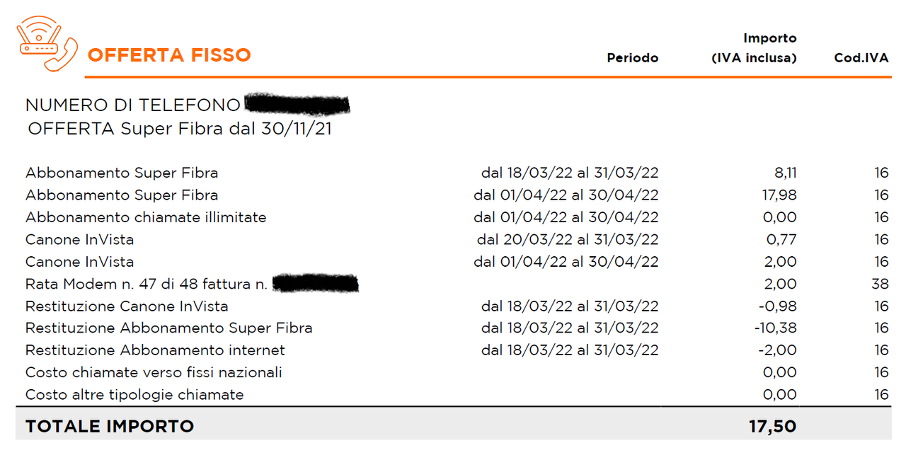![]() Ricevuta la prima fattura scontata. Tutto OK, confermo che le chiamate rimangono incluse e gratuite (io le possedevo già). L'importo è quasi imbarazzante ![]() Non ho ben capito perchè mi abbiano scontato il costo dell'InVista... Se vogliono farlo anche per i mesi successivi di certo non andrò a lamentarmi ![]() |