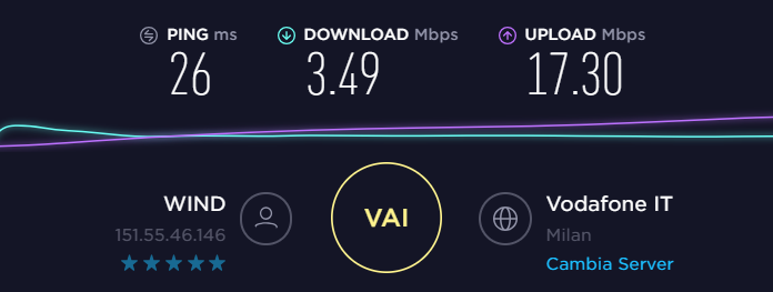 Oramai siamo a fine mese, data di sistemazione del problema a detta degli operatori di Wind, ma credo che la situazione non cambierà. Io ho fatto il test Nemesys e questi sono i risultati: Banda in download (kbps) Media: 45436 Deviazione Standard: 27313 95 quantile (banda minima): 6717 Banda in upload (kbps) Media: 4696 Deviazione Standard: 182 95 quantile (banda minima): 4502 Ritardo di trasmissione dati (ms) Media: 20 Deviazione Standard: 10 95 quantile (banda minima): 38 Ed ovviamente: Riscontrata violazione degli impegni contrattuali sul parametro: 95 quantile della banda in download relativo all'offerta contrattuale "Wind / Consumer / Wind Home Fibra 200 Mega / VDSL", inserita in fase di registrazione* Inviata PEC a Wind, aspetto 30 giorni, poi nuovamente altro test e poi se non cambia nulla allora posso cambiare senza penali. Quindi nè per il modem fisso nè per il modem portatile nè per la disdetta anticipata! Se vogliono così si farà così! |
