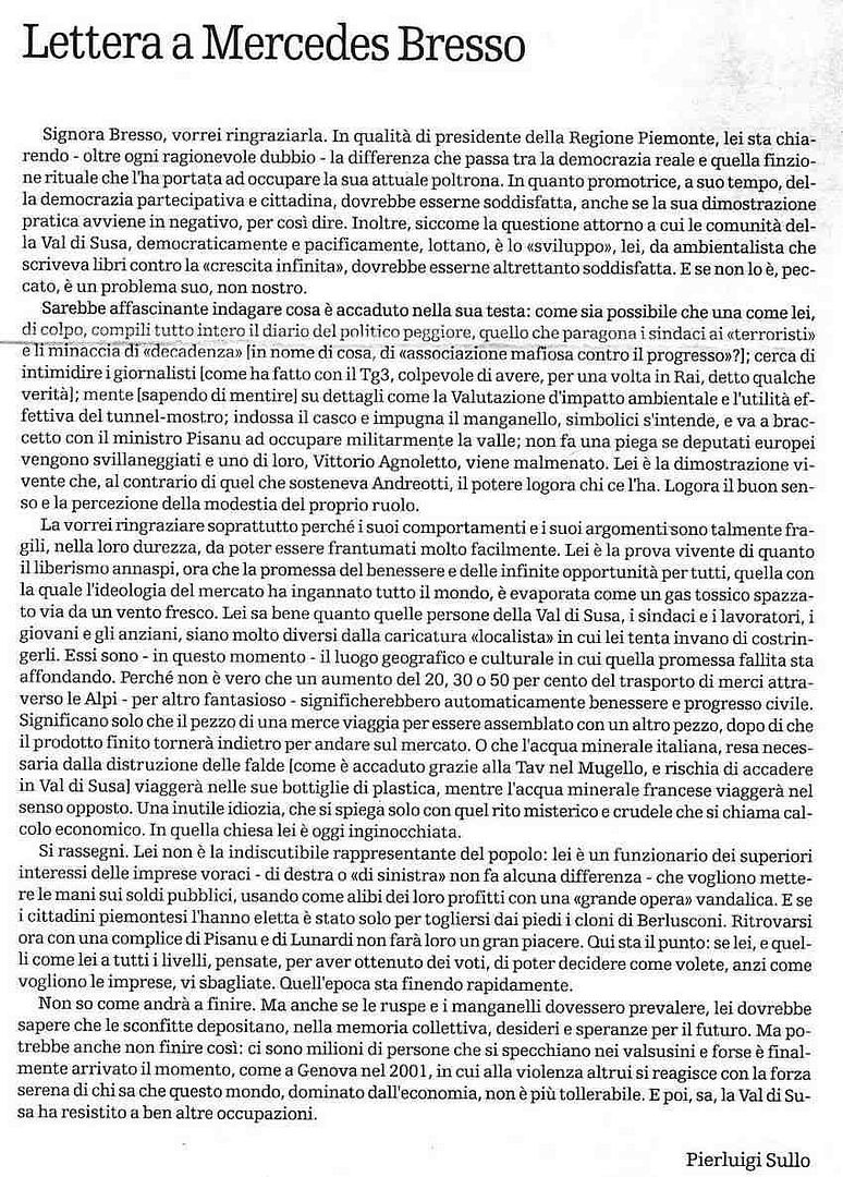 Lettera a Mercedes Bresso da parte di Monica Frassoni
