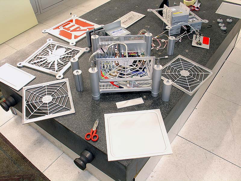 Eccovi le fiancate destra e sinistra dello Spider's Web! ![]() Zoom ![]() Zoom dopo la lavorazione, che ha presentato alcuni problemi, ho smontato il G69T ed ho provato un pre assemblaggio con i 4 pezzi ancora da anodizzare. Dentro il case c'è un gran ca***o di cavi, il tutto e provvisorio. ![]() Zoom ![]() Zoom ![]() Zoom ![]() Zoom ![]() Zoom la prossima settimana prova ad inserire internamente, a contatto con la ragnatela, una rete fine in ottone, vediamo Questo fine settimana inizierò il progetto per la piastra posteriore dove è installata la ventola da 120x120 e l'alimentatore, infatti il prossimo mod riguarderà l'alimentatore che verrà integrato al case con una struttura nuova e una ventola da 120x120.... Ciaooo e alla prossima News! |