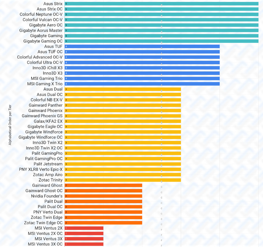 Per un utile ed interessantissimo confronto tecnico sulle varie proposte della 4070 liscia potete guardare questo video, più sotto poi un estratto generale sui ranking tiers delle varie schede. Le differenze tra i modelli sono sostanziali e non c'entra nulla il brand ma il singolo modello.