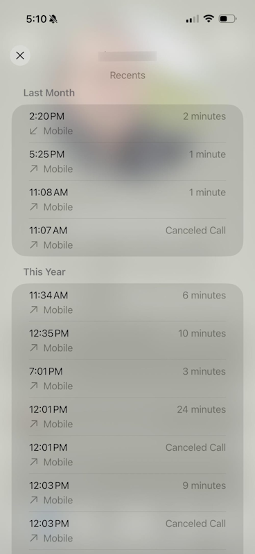 Nell'app Telefono di iOS 26, per ciascun contatto è ora possibile vedere la cronologia completa delle chiamate, che si estende su mesi ed anni, anzichè solo le ultime: ![]()