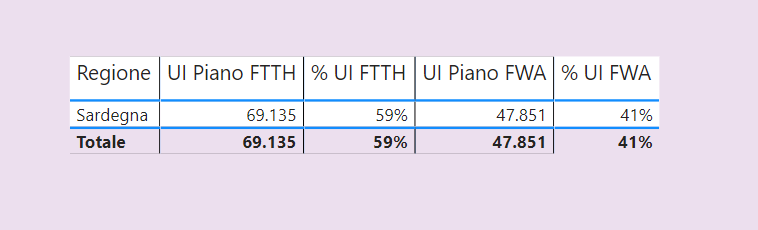 Sembra che ci sia stato un taglio netto di UI FWA e un lieve aumento delle ui FTTH in Sardegna ma anche in altre regioni:
