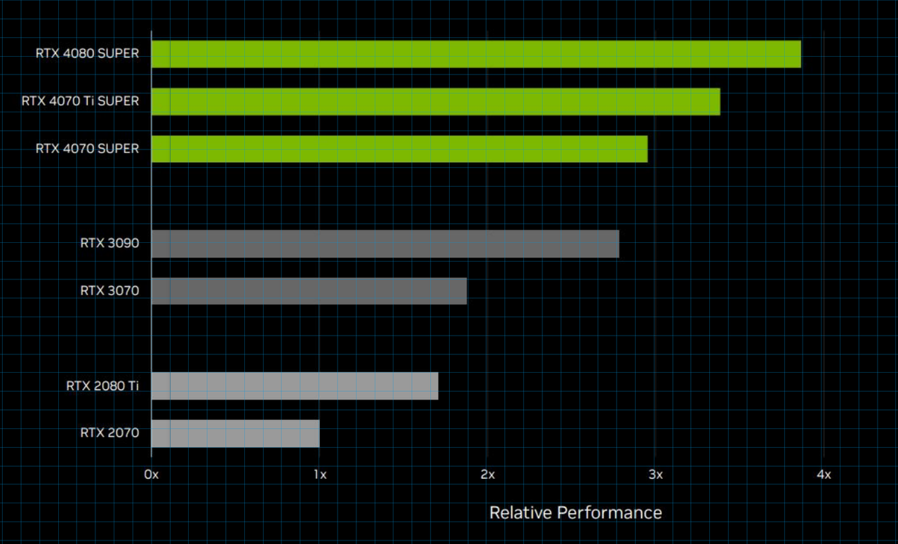 Per gioco nella slide di nVidia ho aggiunto i valori intermedi, la 4080s rispetto alla 2070 è 3,9x mentre la 4070 Ti super a 3.35x visto che la 4080 è circa il 14% più veloce starebbe a 3.35*1,14=3.8, la 4080s dovrebbe essere circa il 3% più performante rispetto alla liscia