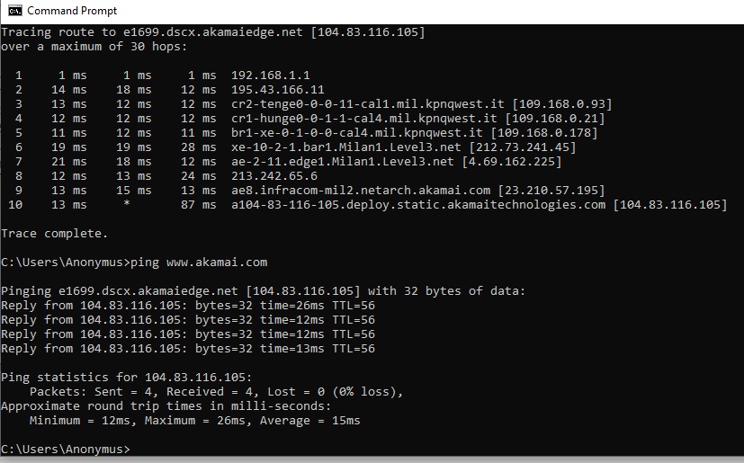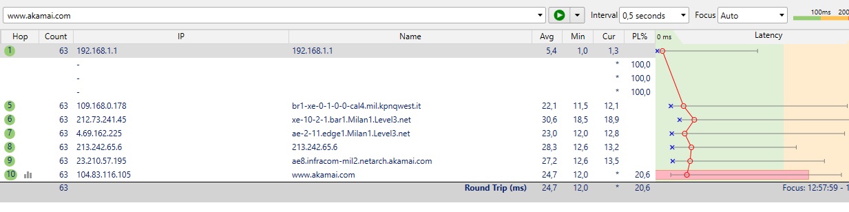 C:\Users\USER>tracert 142.250.184.35 Traccia instradamento verso mil41s02-in-f3.1e100.net [142.250.184.35] su un massimo di 30 punti di passaggio: 1 <1 ms <1 ms <1 ms FRITZ-NAS [192.168.1.1] 2 10 ms 9 ms 9 ms ip-58-1.sn1.clouditalia.com [62.94.58.1] 3 18 ms 17 ms 17 ms ip-2-97.sn-212-90.clouditalia.com [212.90.2.97] 4 19 ms 17 ms 18 ms 72.14.242.172 5 20 ms 18 ms 19 ms 74.125.245.241 6 24 ms 18 ms 17 ms 142.250.212.245 7 19 ms 18 ms 17 ms mil41s02-in-f3.1e100.net [142.250.184.35] Traccia completata. hai lo stesso instradamento mio verso G ?