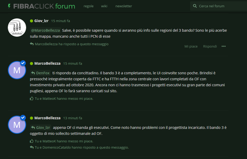 Aperta ufficialmente la vendibilità nel primo comune delle aree bianche del 3 bando. Ad oggi non sono ancora riuscito ad avere notizie del mio comune da parte di Modulo Servizi Srl, certo che non gli costava niente a questi dirmi informazioni solo sul mio civico..