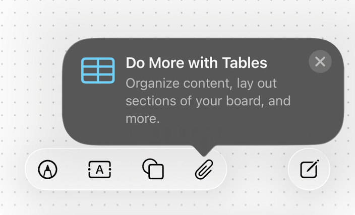 All'interno delle Lavagne di Freeform, si possono inserire delle Tabelle per disporre i contenuti, come testi e immagini, su righe e colonne ![]() ![]() ![]()