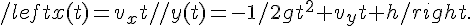 la risposta alla tua domanda è x=0. Appena esce dalla canna del fucile, il proiettile è soggetto alla gravità, per cui comincia a deviare dalla traiettoria orizzontale. Le formule del moto sono quelle già postate. Per inciso la tacca di mira dei fucili è mobile, proprio per poter compensare l'abbassamento del proiettile rispetto alla traiettoria orizzontale, proporzionalmente alla distanza. Se non applicassi la correzione, mirando alla testa, colpiresti il bersaglio più in basso (e per distanze notevoli, colpiresti il terreno davanti al bersaglio...)