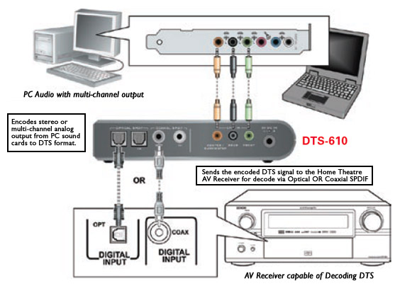 Home Theatre Connect DTS-610 Creative® Digital I/O Module Secondo te possono andare bene? Con tutti questi cavi e trasformazioni del segnale c'è il riscio di perdere in qualità? |