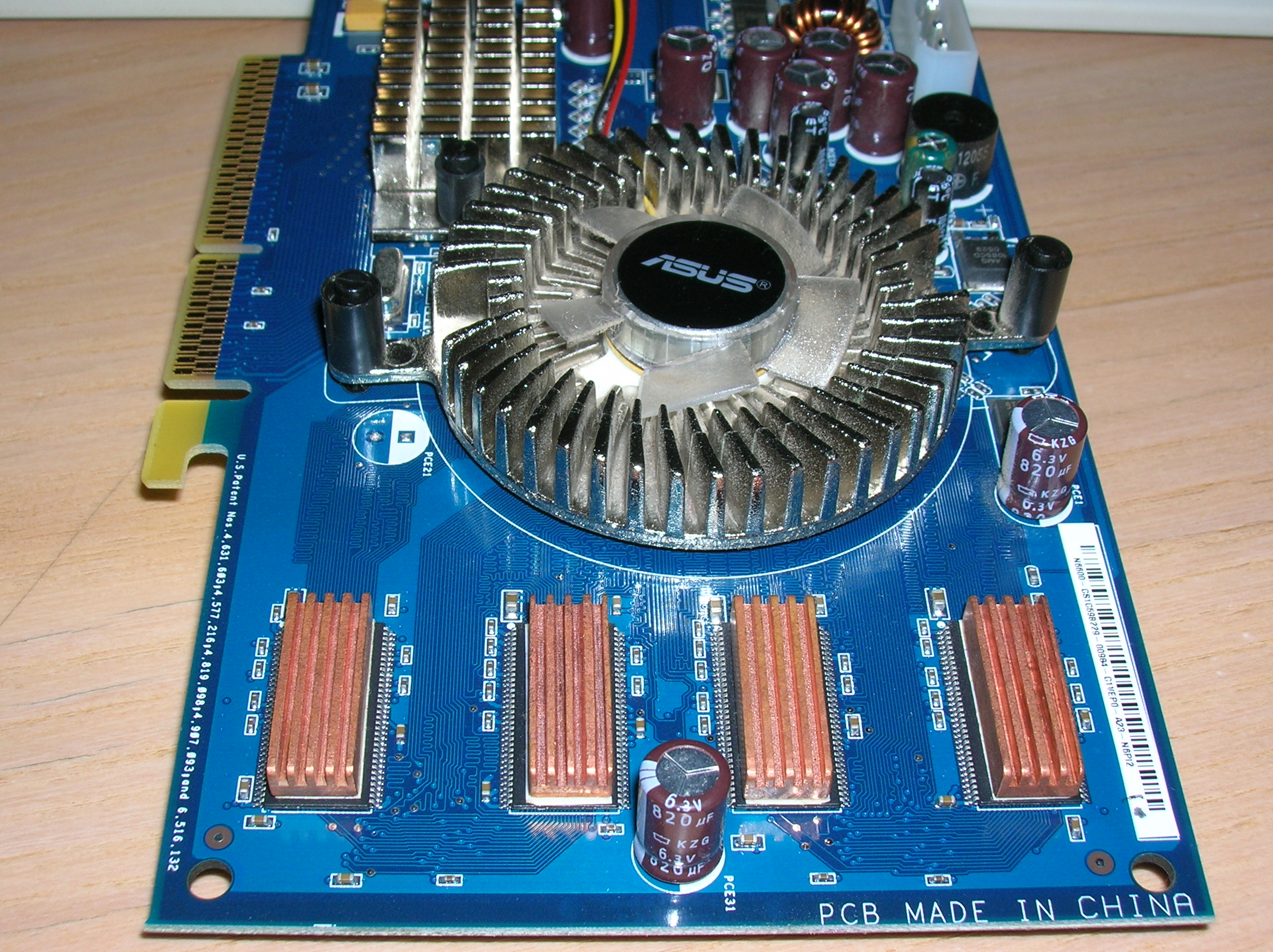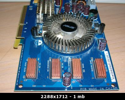 - La scheda mi è arrivata da un RMA nel dicembre del 2005. Essendo Asus ed avendo 3 anni di garanzia (credo via seriale) gliene restano ancora 2! - Vi viene venduta con dei dissipatori per ram applicati a tutti gli 8 moduli (come da foto). - Le frequenze di default sono 300/500, passa il test nvidia e completa tutti i 3dmark a 440/540 ma logicamente non garantisco nulla dal momento che io stesso l'ho sempre usata a default durante i giochi e overcloccata per qualche minuto solo per i test! - La scheda è ovviamente completa di scatola cd e adattatori vari! Foto: Come potete notare la scheda è praticamente nuova,la ventola è termocontrollata e veramente silenziosa! Se qualcuno non conoscesse le specifiche ecco qui tutto quello che c'è da sapere! Viste le premesse,le condizioni della scheda e le sue prestazioni, chiedo 60€+ss Regole: - Precedenza consegna a mano - Pagamenti con Postepay o eventualmente Paypal
