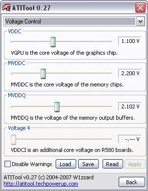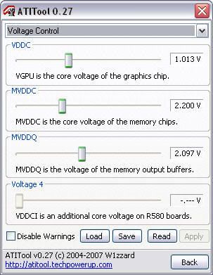 Aggiorno, mostrandovi a che voltaggio sono riuscito a portare la mia 2900pro con frequenze di 300/300mhz (uso windows e navigazione, con applicazioni 3D chiuse).