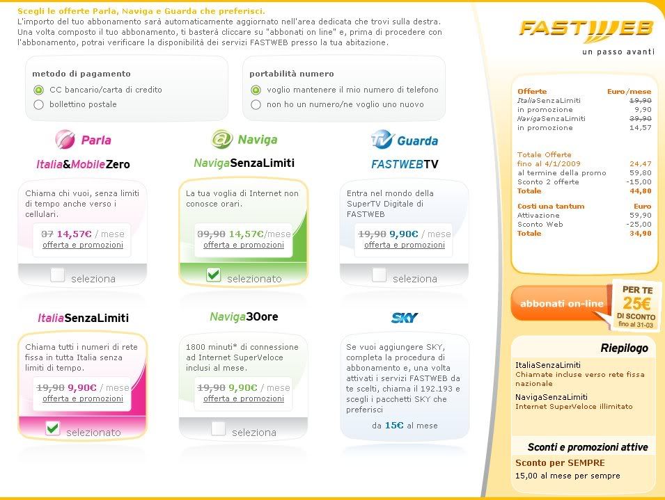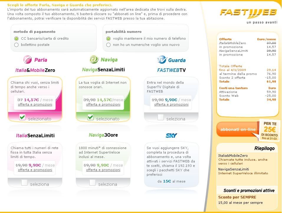 In questi giorni sono stato contattato telefonicamente da Fastweb, ricevendo la seguente offerta: