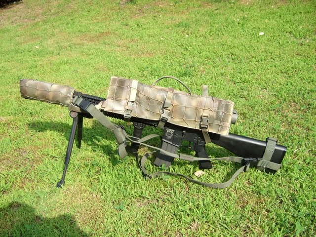 Fai conto che con un sovrapposto come un po in tutti i fucili da caccia ricarichi spesso e con tutta quella roba sopra ci diventeresti matto, anche se sarebbe super mimetizzato.. Avrei dei seri dubbi sulla linea di tiro cmq.. senza ottica sei troppo coperto.