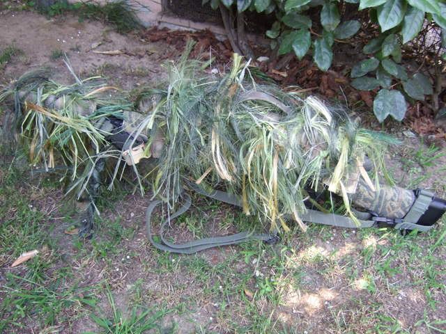 Nel softair spesso, anche per "confondere" le forme del fucile, si trasforma il tutto in un fucile ghillie (la ghillie è quella tuta che si vede spesso addosso ai cecchini delle forze speciali o, per l'appunto, ai giocatori di soft air un po impallati)...in pratica si costruisce con un qualche materiale (di riuso o nuovo) uno scheletro a rete attorno al fucili e vi si legano delle fascette di juta colorate...due foto sono molto meglio di tante parole: ![]() ![]() Questo è un esempio un po estremo, perchè fatto apposta per essere tolto in fretta dal fucile...ho visto anche cose più rozze e artigianali come la rete direttamente attorno al fucile. Pro: sei mimetizzato mooolto bene, il tutto se fatto con materiali di riuso costa molto poco e, se fatto con criterio, si smonta in fretta Contro: ci vuole tanto tempo libero per farla (principalmente per sfilacciare la juta), non so se sia così facile farlo anche con un fucile vero (nel senso...non so se la canna si scalda troppo con tutta quella roba sopra? ci sono problemi?) |