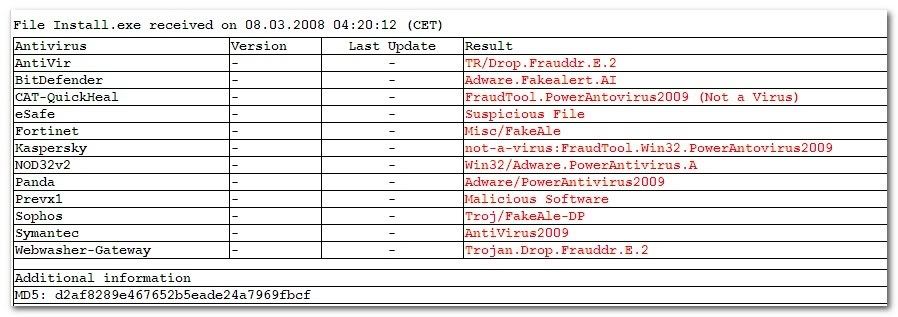 Esaminiamo un altro recentissimo falso software antivirus in circolazione e cioe' PowerAntivirus2009 ![]() dove sul sito e' presente anche una falsa tabella comparativa con altri softwares antivirus in commercio (img sul blog) Si tratta. in effetti, di un clone di un altro famigerato falso programma e cioe' Win Antivirus 2008. (img sul blog) (stesso server di distribuzione e stessa interfaccia) Esaminando il range IP collegato a questi 2 programmi troviamo altri di questi softwares di falsa applicazione antivirus. ![]() Un whois punta a: ![]() Come vediamo, abbiamo alcune applicazioni appartenenti tutte alla categoria dei falsi software antimalware. (img sul blog) Ed ecco alcune videate di esempio con evidenziato l'indirizzo IP di provenienza (img sul blog) anche per Windows Vista Esaminiamo ora piu' in dettaglio l'installazione di Power Antivirus 2009 (img sul blog) Una volta scaricato e lanciato il file eseguibile Install.EXE che Virus Total mostra poco conosciuto dai principali softwares reali AV ![]() abbiamo dopo un rapido caricamento del file la comparsa della finestra di scansione del falso programma antivirus (img sul blog) che evidenzia anche nella taskbar di una icona simile a quella del di Windows Security Center (img sul blog) Alla fine della scansione vengono presentati i falsi files malware trovati (img sul blog) e cliccando sul bottone di rimozione dei falsi files malware individuati c'e' la richiesta di attivazione del programma con la relativa presentazione della registrazione a pagamento del programma (img sul blog) Inoltre si nota la continua comparsa nella taskbar di un messaggio di allerta che informa del falso pericolo malware presente sul computer (img sul blog) ed una insistente comparsa di popup che indicano del presunto pericolo (img sul blog) Come al solito la disinstallazione del software e' molto laboriosa e richiede l'intervento manuale per eliminare alcuni files che il falso antivirus installa sul pc. Si trovano comunque, facendo una ricerca in rete, numerosi siti che illustrano in dettaglio, la rimozione manuale dei files, dll, chiavi del file registro che il falso programma installa sul pc. Edgar fonte: http://edetools.blogspot.com/ Ultima modifica di Edgar Bangkok : 04-08-2008 alle 04:35. |