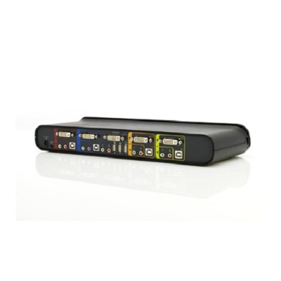 Accesso ai PC Accesso a 4 computer USB da un unico set di tastiera e mouse USB e monitor DVI. Esecuzione di applicazioni grafiche complesse Supporto per applicazioni di fascia alta con utilizzo di monitor DVI o di schermi piatti. Facilità di utilizzo Selezione dei canali personalizzata mediante pulsanti di selezione o più tasti di scelta rapida. Scansione automatica per un semplice monitoraggio dei computer collegati. Hardware Funzionalità multimediali Condivisione di altoparlanti e microfono tra computer. Hub USB 2.0 in dotazione. Due porte hub USB 2.0 per la condivisione di periferiche/dispositivi USB. Supporto PC multipiattaforma Supporto per PC USB, computer Mac G3/G4 e iMac. Operazione Funzionalità hot-plug Aggiunta o eliminazione di un computer desktop o portatile senza spegnere lo switch o gli altri server collegati. Prestazioni Elevata risoluzione video Risoluzione video 1920 x 1200, ideale per applicazioni grafiche desktop.Accesso ai PC Accesso a 4 computer USB da un unico set di tastiera e mouse USB e monitor DVI. Esecuzione di applicazioni grafiche complesse Supporto per applicazioni di fascia alta con utilizzo di monitor DVI o di schermi piatti. Facilità di utilizzo Selezione dei canali personalizzata mediante pulsanti di selezione o più tasti di scelta rapida. Scansione automatica per un semplice monitoraggio dei computer collegati. Hardware Funzionalità multimediali Condivisione di altoparlanti e microfono tra computer. Hub USB 2.0 in dotazione. Due porte hub USB 2.0 per la condivisione di periferiche/dispositivi USB. Supporto PC multipiattaforma Supporto per PC USB, computer Mac G3/G4 e iMac. Operazione Funzionalità hot-plug Aggiunta o eliminazione di un computer desktop o portatile senza spegnere lo switch o gli altri server collegati. Prestazioni Elevata risoluzione video Risoluzione video 1920 x 1200, ideale per applicazioni grafiche desktop.