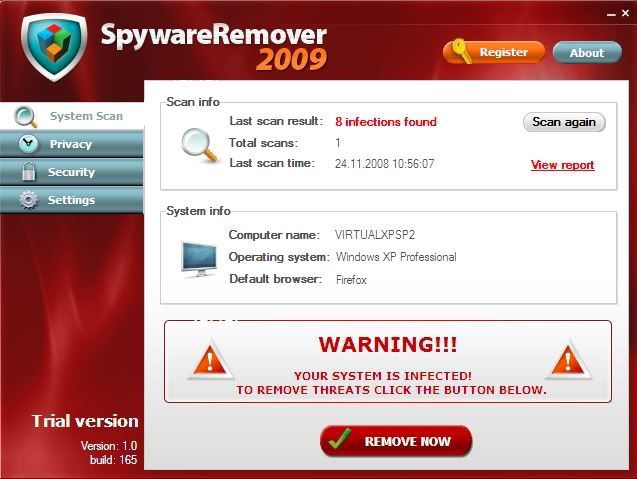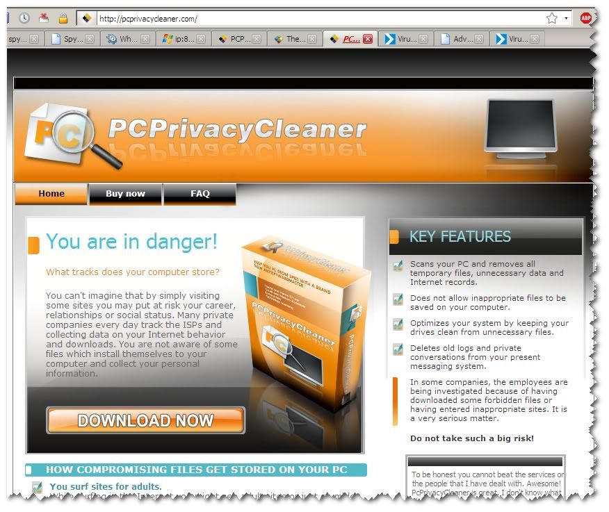 Ecco alcune nuove false applicazioni antivirus che presentano un layout del sito che le propone estremamente curato. XP Protection Center Si tratta di una recente applicazione antivirus fasulla di cui vediamo la homepage ![]() e la pagina del download dell'installer Img sul blog Un whois del sito punta a server USA mentre Virus Total evidenzia ancora una volta lo scarso riconoscimento del falso AV Alcune altre applicazione fasulle AV le troviamo invece su un medesimo IP. Si tratta di PC Privacy Cleaner, che viene distribuito attraverso differenti indirizzi web come vediamo nei due screenshoot, ![]() ed anche di AdvancedPrivacySuite ![]() tutti con il medesimo layout di pagina web Inoltre sullo stesso IP abbiamo anche Spyware Remover 2009 ![]() che presenta un sito molto curato con FAQ e persino il download di un manuale in formato pdf. Img sul blog I file coinvolti nell'installazione sono un installer che a sua volta scarica un file di setup ![]() connettendosi al sito Img sul blog che presenta indirizzi IP multipli Img sul blog tra cui Img sul blog Importante notare che mentre l'installer e' riconosciuto da alcuni softwares AV Img sul blog il programma di installazione (setup dual) viene visto solo da due software AV in lista Virus Total. ![]() Queste alcune videate del programma Spyware Remover 2009 in esecuzione con il solito sistema di avvertire della presenza sul pc di malware attivo in realta' inesistente, e lasuccessiva proposta ![]() di eliminare i codici pericolosi solo dopo aver acquistato il falso antivirus. Edgar ![]() fonte: http://edetools.blogspot.com/ |